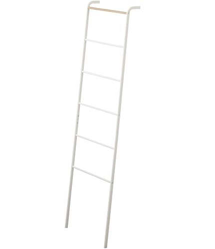 山崎実業のラダーハンガーは、約W45×D24×H160cmのサイズで、ホワイトカラーのスタイリッシュなデザイン。タワーシリーズの一部で、衣類を効率よく収納できます。