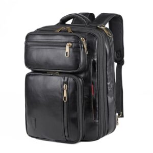 ビーガンレザー ノートパソコン バックパック ブリーフケース ハイブリッド 15.6インチ ラップトップ トラベルバックパック ハイキング カレッジバックパック 男性用 BC-04, ブラック, 2XL, トラベルバックパック。