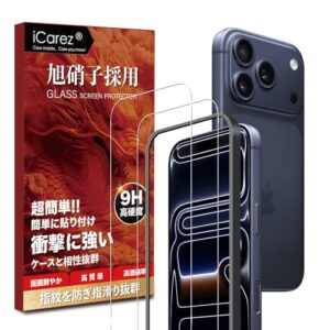 対応 iPhone 17 Pro(2025) 用の ガラスフィルム (2枚) ガイド枠付き【旭硝子素材製·硬度9H 】 アイフォン17 プロ 用の 液晶 保護 フィルム いphone17pro 用の 強化ガラス 耐衝撃 指紋防止 自動吸着 気泡レス ICG17PI2J2
