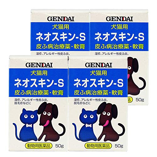 【4個セット】ネオスキン-Sは犬猫用の動物用医薬品で、50gのサイズです。傷や炎症のある部位に適用し、皮膚の健康をサポートします。抗菌作用があり、速やかな回復を促進します。