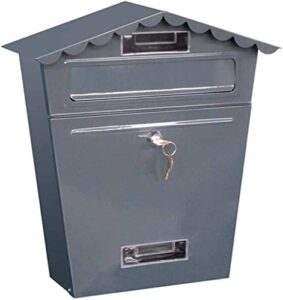 クラシック壁掛けメールボックス レターボックス 屋外 ロック可能 郵便受け 展望付き 耐候性ポストボックス ブラックハウス フロントポーチ オフィス レターボックス – グレー