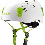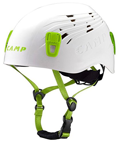 CAMP TITAN ヘルメットは登山・クライミング用の安全装備で、軽量なSサイズ(ホワイト)モデルです。通気性とフィット感を考慮した設計で、衝撃吸収性能にも優れています。