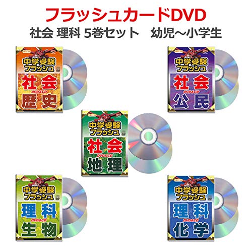 中学受験に対応した社会・理科の学習用DVD5巻、CD5巻、フラッシュカードDVDを提供。歴史、地理、公民、生物、化学をカバーし、星みつる式の学習法を採用。自宅での予習・復習に最適。ただし、付属品や手引きは含まれず、取組みサポートもなし。