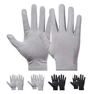 [PIROXIS] メンズ グローブ 夏用 グローブ 薄型 UV手袋 接触冷感【UVカット・通気性あり・滑り止め加工・タッチパネル対応】日焼け対策 釣り・自転車・運転 男女兼用 (グレー, L-男性向)