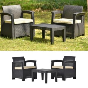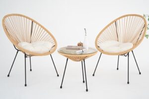 【TOKILO】ガーデンテーブルセット ラタン調 【日本企画のおしゃれなテーブル椅子セット】 【座面、ヘッドクッション付】 【室内/ベランダ/バルコニー/庭など場所を選ばず使える】ガーデンファニチャー 3点セット ナチュラル