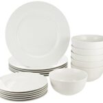 Amazonベーシックの食器セットは、ホワイトの皿とボウルが各6人分デザインされており、合計18点が含まれています。耐久性に優れた素材で、日常使いに最適なキッチン用アイテムです。