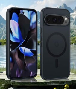 Google Pixel 9a用ケース:磁気マット耐衝撃頑丈な半透明携帯電話カバー-ミリタリーグレードの落下防止頑丈なハードスリム保護ケース(ブラック/6.3インチ)