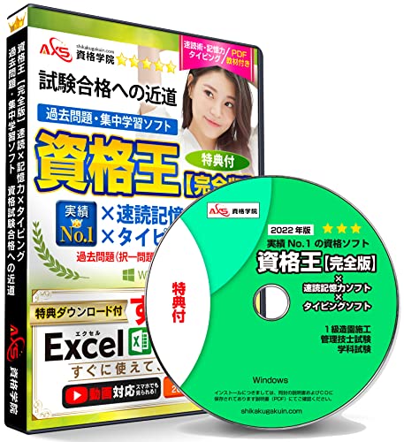 1級造園施工管理技士試験の学科試験対策ソフト。速読術、記憶力、タイピングトレーニング付き。過去問で集中学習が可能、特典付きの充実内容で合格をサポート!