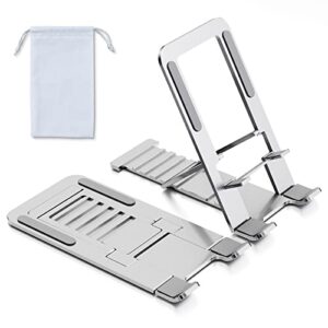 業界最薄型スマホスタンド 卓上 アルミ製 携帯スタンド 角度調整可能 折りたたみ 式 タブレット スタンド としても兼用 ホルダー 対応iPhone 17/16/15/14/13/Pro/Pro Max/Plus/SE/mini などの携帯,対応iPad/Kindle/Nintendo Switchに適用 4-12インチ 超薄 コンパクトに収納可能 軽量持ち運び シルバー
