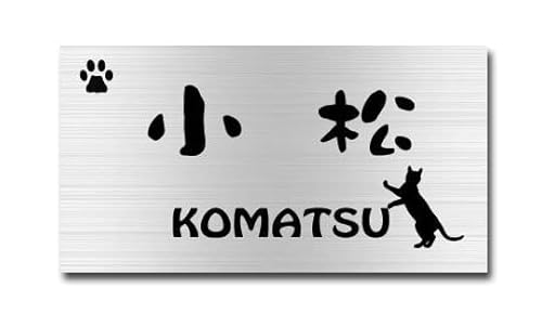 ガラス工房まるみのステンレス表札は、ネコや肉球デザインを施した戸建てサイズ15×8cmの製品です。ヘアライン仕上げのステンレスにサンドブラストとエッチング技術を使用し、高級感と耐久性を兼ね備えています。