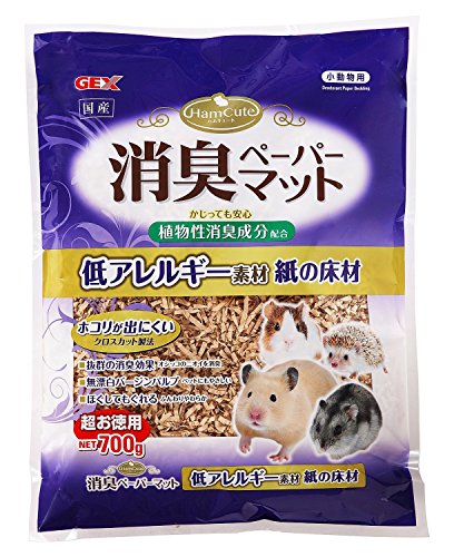 ハムキュート消臭ペーパーマットお徳用700gは、小動物用の快適な床材です。消臭効果があり、優れた吸収力で清潔を保ちながら、柔らかな質感が動物たちに安心感を与えます。