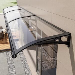 ひさし屋根 後付け 玄関 雨よけ 庇 アルミブラケット付き 屋根庇 住宅用ひさし, サンシェード オーニング屋根ひ, PCポリカーボネート オーニング, 後付け簡易屋根 雨雪保護 日除け 梅雨対策 テラス排水機能付き-透明-120x300cm