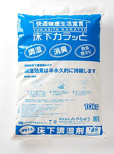 みやちゅうの床下カラッと敷き込みタイプは、湿気を効果的に吸収・調湿する床下調湿材です。1袋は10kgで、居住空間の快適さを向上させ、カビやダニの発生を抑制します。