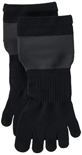 CROSSPROの5本指ランニング靴下は、吸水速乾性、アーチパネル、テーピング構造を採用。足底の滑り止め機能付きで、マラソンやトレーニングに最適。サイズは26.0~28.0cmのブラック/グレー。