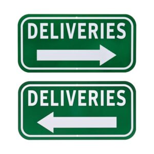 M METERXITY 2パックの配 達サイン リフトとライト矢印付き 12″ x 6″錆びにくいアルミニウム表札 家庭/オフィス用のパッケージ配 達指示[緑の白]