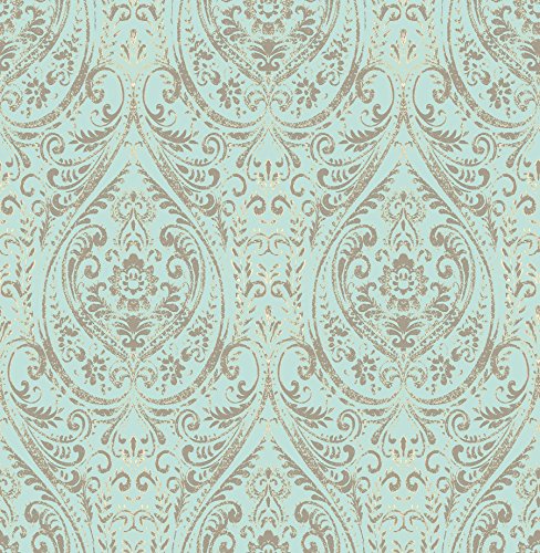壁紙屋本舗のシールはがせるNU WALLPAPERは、ダマスク柄のエメラルドグリーンを採用。サイズは52cm×約5mで、手軽にリフォームが可能です。時間や手間をかけずに、おしゃれな空間作りができます。