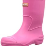 アキレスの軽量レインブーツは日本製で、14cmから21cmまでのサイズ展開。2Eの幅で男の子・女の子向け、カラフルなピンクが魅力。19.0cmサイズもあり、快適な履き心地です。