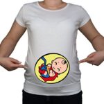 このマタニティトップは、スーパーマンデザインの可愛いコットンプリントで、柔らかく快適です。出産前後にぴったりのアイテムで、スタイリッシュに過ごせます。
