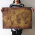 アンティーク風のオシャレな世界地図ポスター。インテリアや骨董にぴったり。宝の地図としても使え、海賊コスプレにも最適な17世紀デザイン。多種選択可能。