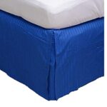 ストライプパターンのテーラードフィットベッドスカート。8インチのドロップ長で、ブルー色。ソフトでスムーズなフィット感。全てのドロップ長に対応。
