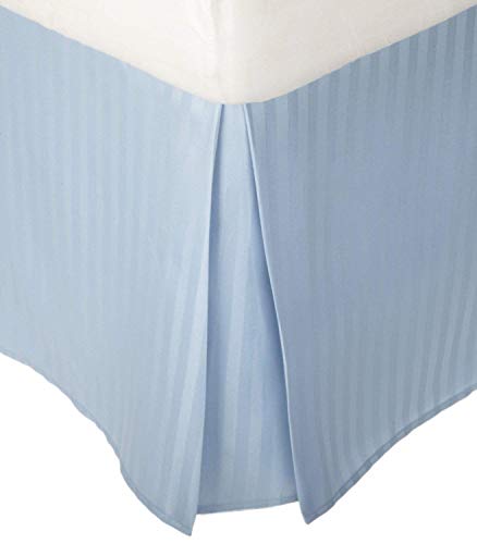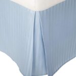 ストライプパターンのTailored Fitベッドスカート。12インチドロップ、スムーズなフィット。カラーバリエーションはブルーで、すべてのベッドに対応可能。
