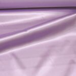 ポリエステルサテン生地、パープル(藤紫)。幅122cm、長さ50cm単位で連続カット可能。光沢感があり、柔らかな手触りで、ドレスや小物製作に最適です。