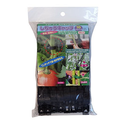 シーム誘引資材しちゅうキャッチ16mm用は、24個入りの黒色タイプです。農作物や植物を安全に誘引・固定するための便利なアイテムで、強力な保持力を発揮します。