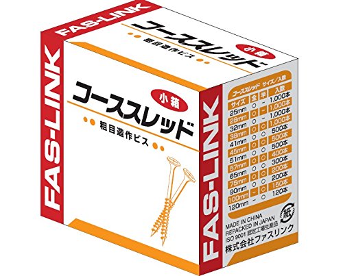 ファスリンク コーススレッド小箱は、サイズ3.8X32mmの高品質な木ネジです。耐久性に優れ、様々な木材や建材に対応。DIYやプロの施工に最適です。