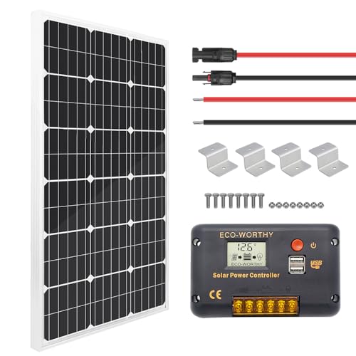 ECO-WORTHY 200Wソーラーパネルは、単結晶PERC技術と12BB採用の高性能キット。100Wパネル2枚、10mケーブル、30Aチャージコントローラー、Y型コネクター、Z取付金具付。初心者向けで、ISO 9001・RoHS・TÜV・CE認証取得。