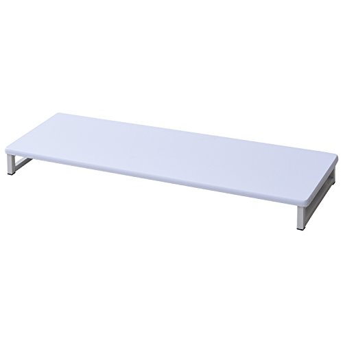 山善(YAMAZEN)のモニター台は幅80cm、奥行25cm、高さ8cmで、キーボード収納が可能。組立が簡単で、ホワイトとアイボリーの2色展開。在宅勤務に最適です。
