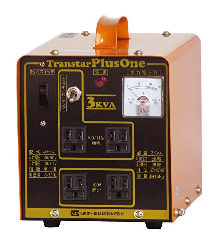SUZUKID 変圧器トランスタープラスワン STX-312Pは、昇圧・降圧が可能なトランス。電圧を調整し、220Vから110Vへ変換、またその逆も可能。軽量で持ち運びに便利。