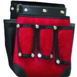 K-WORK カワタッチ工具差し付き腰袋 PW-52は、赤と黒のデザインで、電気工事や高所作業に最適です。安全帯を利用し、落下防止機能を兼ね備えており、作業効率を向上させます。