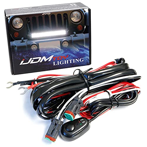 iJDMTOYのDT DTPコネクタリレーハーネスは、オフロードLEDポッドライトやLED作業灯に最適で、LEDライトバーやフォグライト、運転灯にも対応します。オン/オフスイッチ付き。