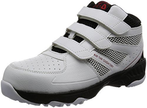 キタのメガセーフティ安全靴MG-5640は、通気性の高いメッシュ素材を使用し、快適な履き心地を提供します。3本のマジックテープでフィット感を調整可能。サイズは26.5 cm、ホワイトカラーでスタイリッシュ。