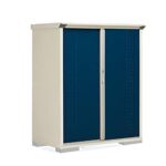 タクボ物置 GP-137BTは、屋外用の小型収納庫で、ディープブルー色のたて置きタイプです。ネット棚付きでDIYにも最適です。