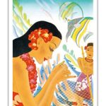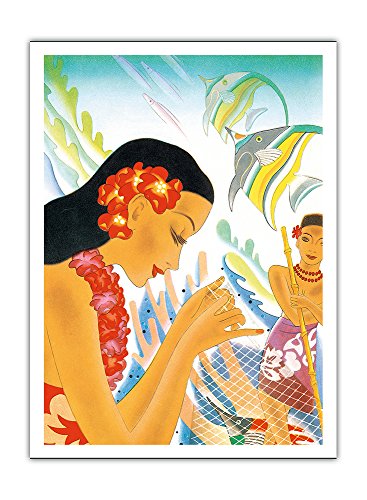 海のギフトのハワイアン女性釣りネット修復や1930年代のVintage Ocean Linerメニューカバー、ハワイアンアートプリント(36″ x 48″)など、独自のアート作品を提供します。