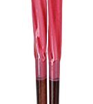 アオバの天然木製箸、あめ玉ネジリデザイン。全長18cmで、持ちやすく、食卓を彩ります。耐久性に優れ、温かみのある赤色が特徴的。食事が楽しみになるアイテムです。