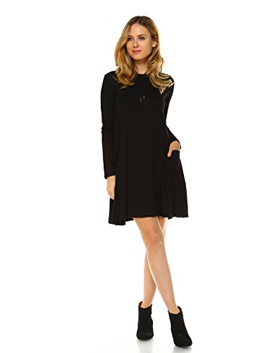 / 今日ショールームブティックプレミアムレーヨン長袖スイングドレスwithオープンサイドポケット US サイズ: L カラー: ブラック