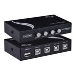 ES-Tune 4ポートUSB 2.0手動切替器は、4台のPCやプリンターを1台の出力デバイスに簡単に切り替え可能。小型で軽量、使い方もシンプルな周辺機器切替装置です。