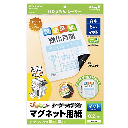 マグエックスのマグネット用紙ぴたえもんは、レーザープリンタ用のマットタイプA4サイズで5枚入りです。まとめ買いで便利に、オリジナルのマグネットを手軽に作成できます。