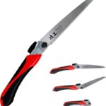 角利産業のコンパクト折込鋸は、210mmの刃渡りで替刃式。2段切替の角度機能があり、収納が便利です。日本製ブレード使用で高品質な切断を実現します。