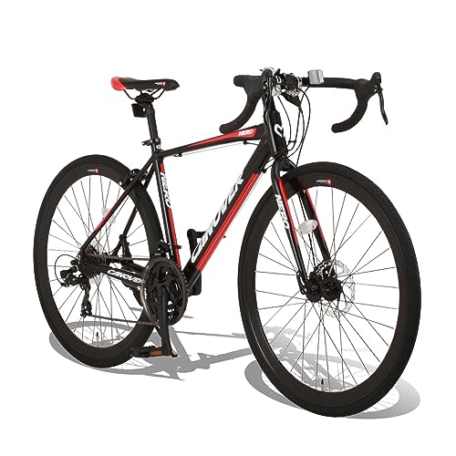カノーバー(CANOVER) グラベルロードバイク CAR-014-DC NEROは、21段変速・ディスクブレーキ搭載のアルミフレーム自転車です。オフロードでも快適に走行でき、スタイリッシュなブラックデザインが魅力。