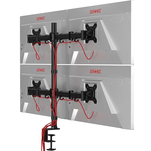 Duronic DM254は、4画面対応のモニターアームです。13〜27インチの液晶ディスプレイに対応し、VESA75/100に準拠。黒のスチール製で高さ調整可、360度回転機能付き。デスク周りをスッキリ整理できます。