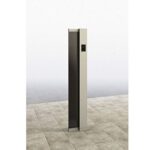 YKKAP ルシアス サインポール A03型 URC-A03は、照明なしでインターホン加工が施されたRタイプの機能門柱です。アルミカラーのカームブラック仕上げで、表札はネームシールとなります。