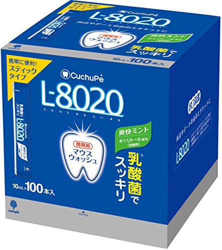 紀陽除虫菊のマウスウォッシュ クチュッペ L-8020 爽快ミントは、100本入のスティックタイプで個包装されています。アルコール配合で、携帯に便利な仕様です。