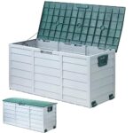 iimono117の屋外収納ボックスは、220Lの大容量で、コンテナボックスとして使用可能。ハンドルとキャスター付きで移動も簡単。ベランダや物置、ごみ置き場に最適。野良猫やカラス対策も考慮されています。