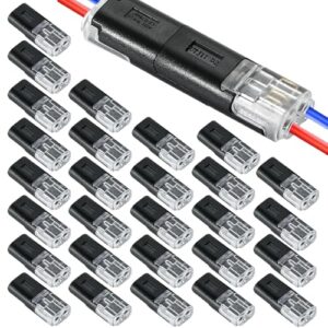 2ピン LED コネクタ、30個 入りD2 快速接続端子 剥線不要の電線接続器 押し込み式導線クイック配線端子、はんだ付け不要、電線被覆剥き不要 自動車用クイックプラグインコネクタ、電気工事 回路修理 家庭用 カスタマイズ 工事現場 クイック接続 省配線