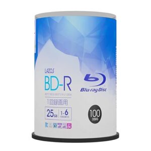 Lazos BD-R 25GB 1-6倍速対応 1回記録用 ホワイトワイド印刷対応 100枚組 スピンドルケース入 L-B100P