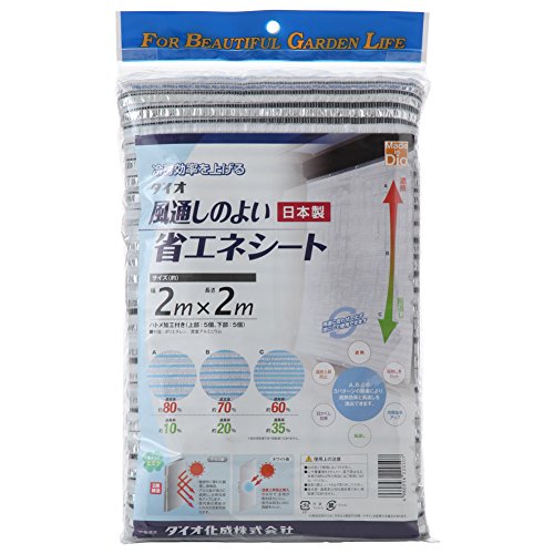 Dio(ダイオ)の風通しのよい省エネシェードは、サイズ2m×2mで、日差しを遮りながら風通しを確保。省エネ効果が高く、快適な環境を提供します。耐久性とデザイン性も兼ね備えた製品です。