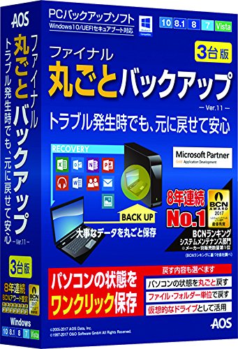 ファイナル丸ごとバックアップ3台版は、OSやアプリケーションを簡単操作でバックアップできます。ファイル・フォルダ単位のバックアップや、Windowsが起動しない場合の復元にも対応しています。